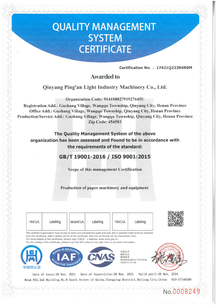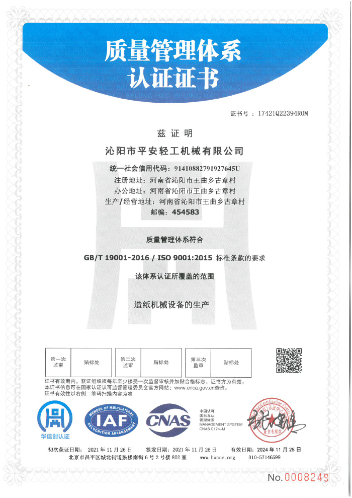 沁陽市平安輕工機械有限公司您現在所在的位置:首頁 > 資質榮譽